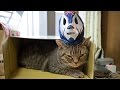 ミル・マスカラスのマスクに翻弄、絡まれる猫。